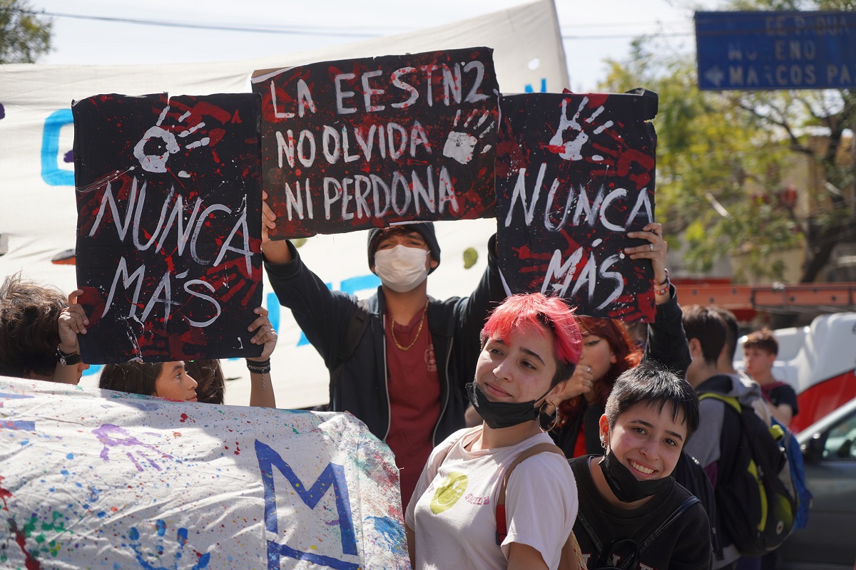 Cientos de jóvenes,autoridades, referentes de distintas instituciones educativas y centros de estudiantes caminaron desde la Plaza Néstor Kirchner por Avenida del Libertador y Avenida Calle Real hasta llegar a la Casa de la Cultura.