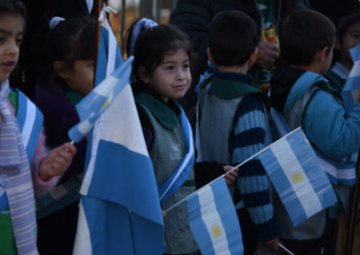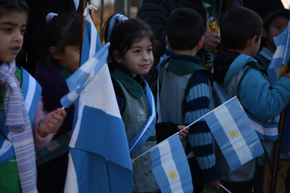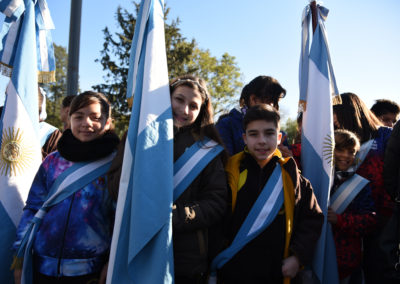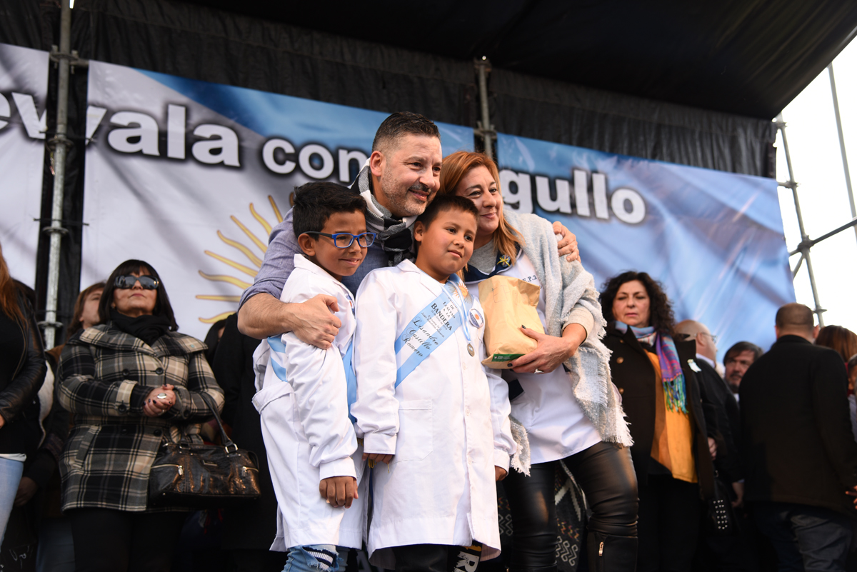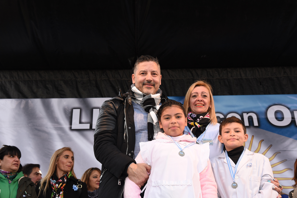 El acto conmemorativo reunió a vecinos y vecinas, a la comunidad educativa, y a autoridades municipales encabezados por el jefe comunal Gustavo Menéndez, que expresó que “es un acto muy significativo para la vida de los niños, y para nosotros como institución municipal poder tomar esa promesa solemne de amar y honrar a nuestra bandera“.