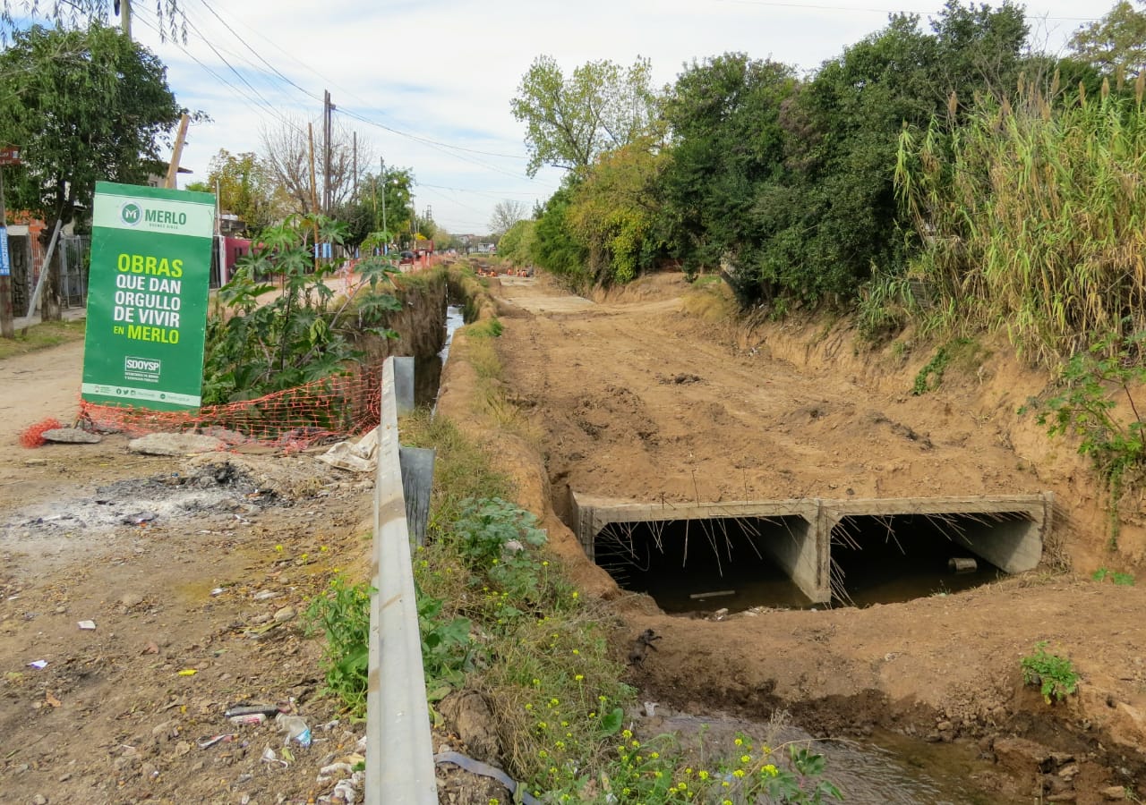 Este importante trabajo beneficiará a miles de vecinos de Merlo Norte que no volverán a inundarse. Además se realiza la pavimentación de la Av. Salguero, que se convertirá en una importante arteria del distrito.
