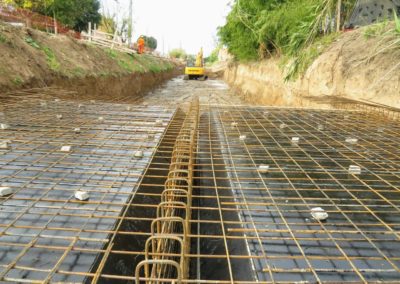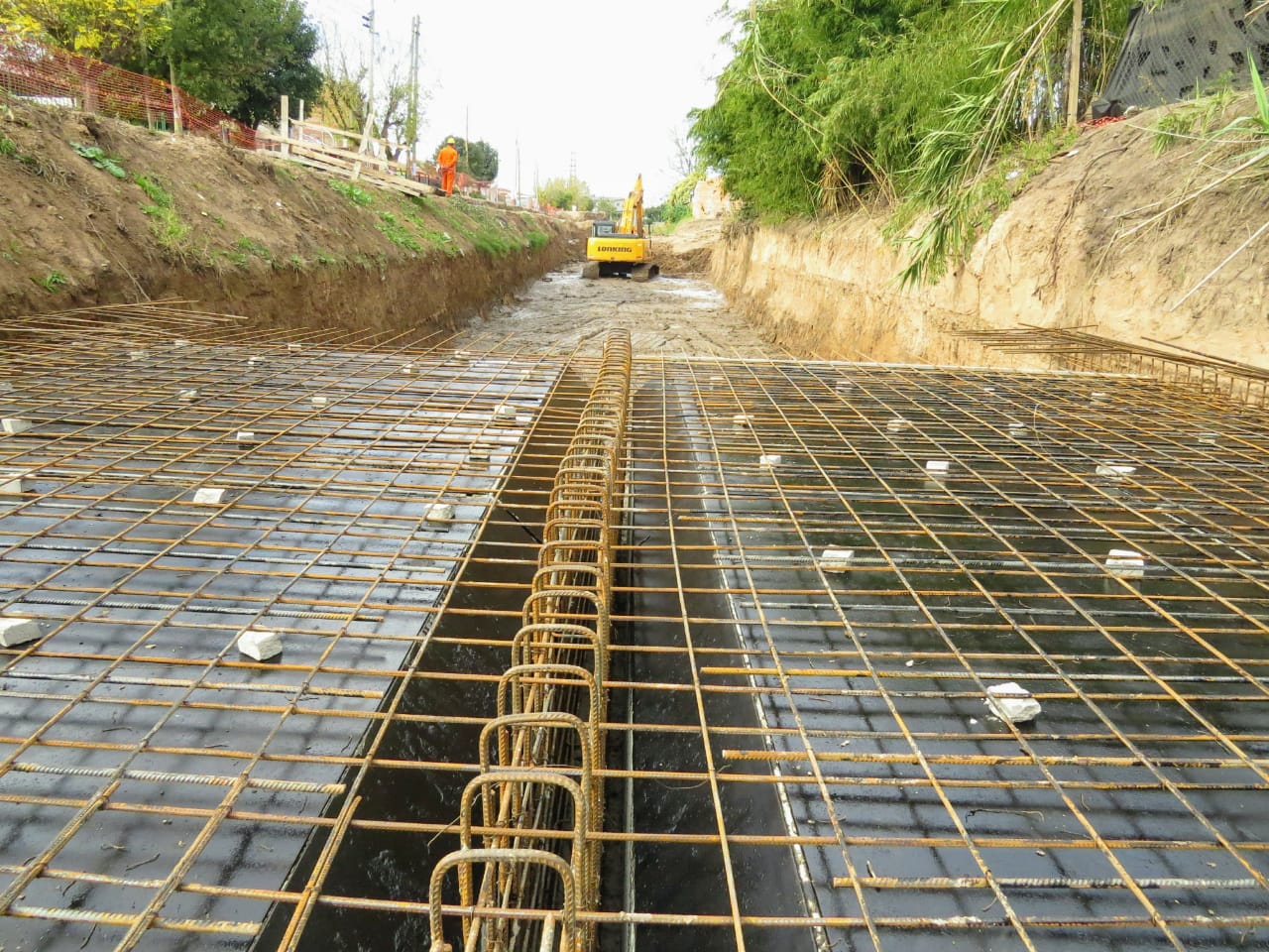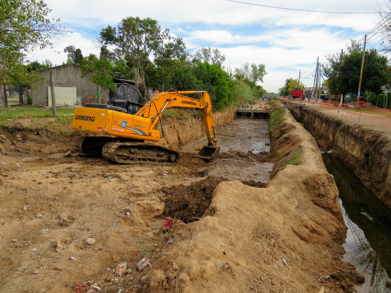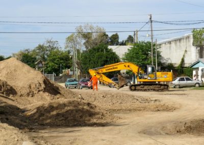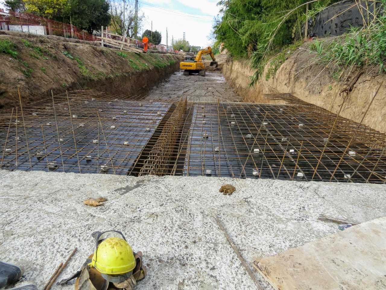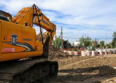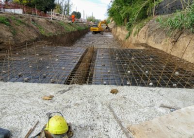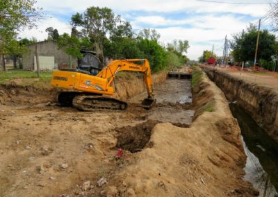 Actualmente se lleva a cabo la ejecución del conducto principal de sección rectangular del arroyo cuenca baja. El mismo está compuesto por dos celdas, cada una de ellas de 3,50 m de ancho y 1,50 m de altura. A fin de optimizar el trabajo, se procedió a desviar el curso del arroyo, el que actualmente corre en forma paralela, al antiguo cauce.