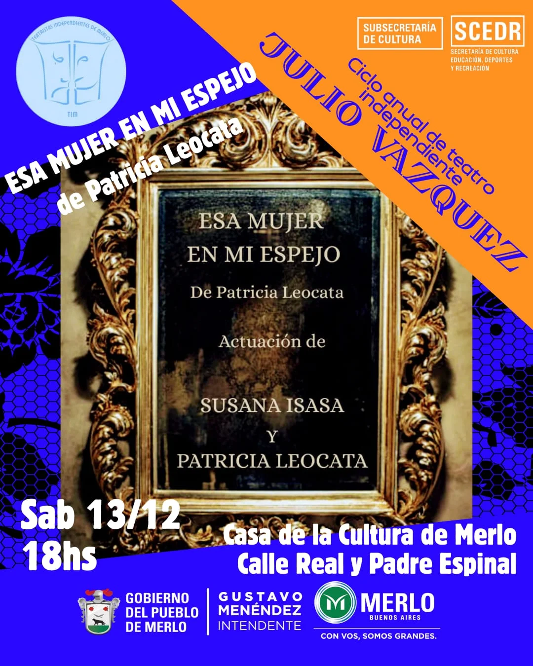 - Sábado 13 de Diciembre, 18 hs: “Esa mujer en mi espejo”- Entrada libre y gratuita. Ingreso por orden de llegada
