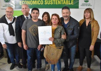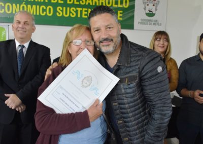 Se entregaron 69 nuevas escrituras para que más vecinos merlenses tengan en su poder los títulos de propiedad de sus viviendas. El acto estuvo encabezado por el Intendente Gustavo Menéndez y la Secretaria de Desarrollo e Integración Social Karina Menéndez.