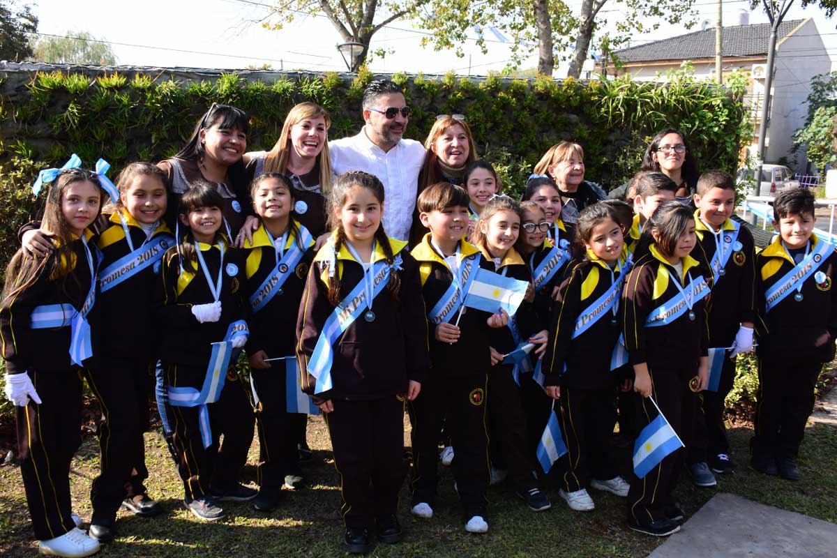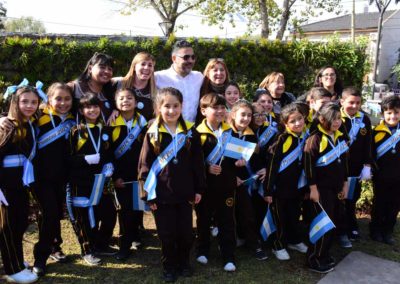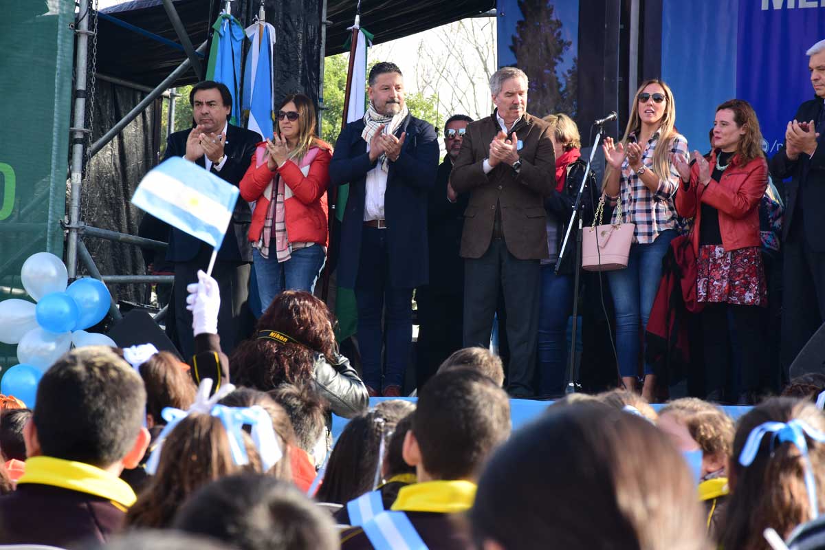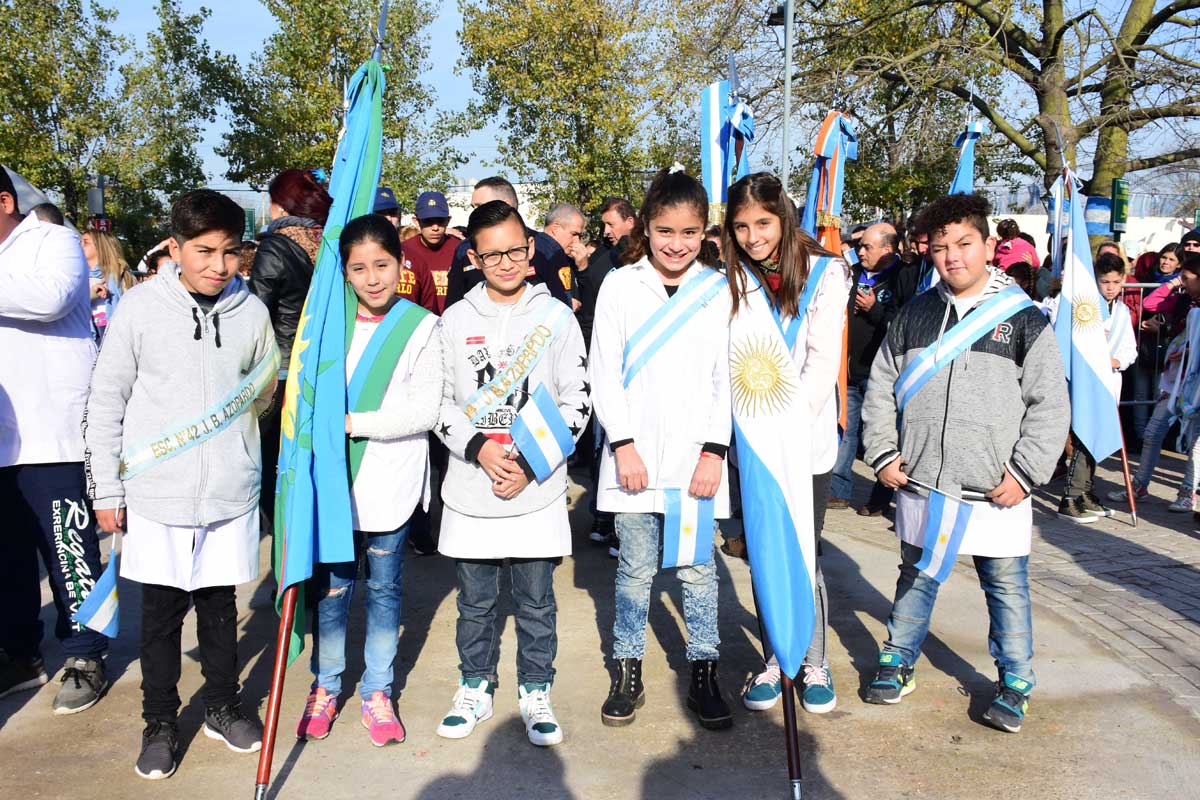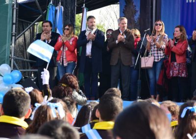 La jornada conmemorativa reunió a toda la comunidad educativa del distrito y a todas las autoridades municipales. El Diputado Nacional Felipe Solá y el ex Diputado Julián Domínguez estuvieron presentes en este acto patrio, que incluyó un desfile y baile tradicional.