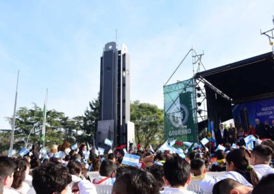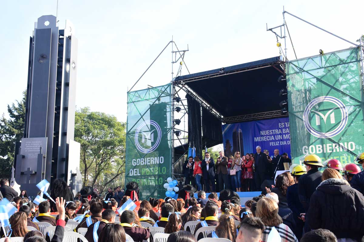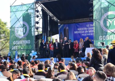 El acto por el Día de la Bandera y la Jura a la insignia patria por alumnos de 4to grado de escuelas de Merlo tuvo lugar en la Plaza Manuel Belgrano, en Parque San Martín. El Intendente Gustavo Menéndez participó de la jornada.