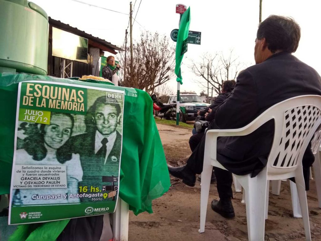 Familiares, amigos y vecinos se hicieron presentes durante la señalización que homenajea a Devallis y Paulín, ubicada en Curupaytí y Antofagasta, en un nuevo aniversario del secuestro de ambos, que tuvo lugar el 12 de julio de 1976. Eran militantes del Ejército Revolucionario del Pueblo (ERP) que llegaron a Merlo con sus dos hijos después de haber pasado por las provincias de Tucumán y Córdoba. Graciela daba clases de catequesis y Osvaldo estudiaba en la Escuela del Trabajo.