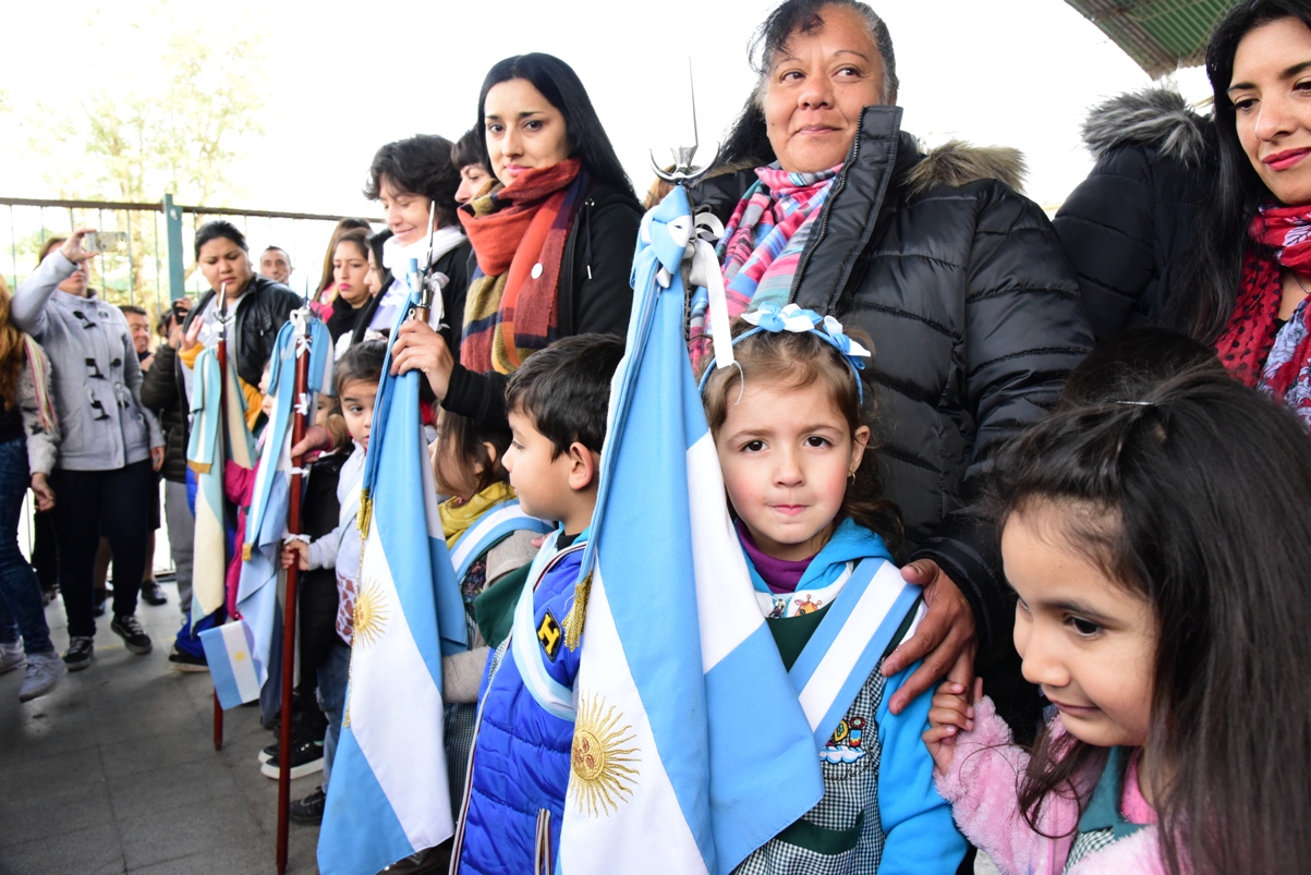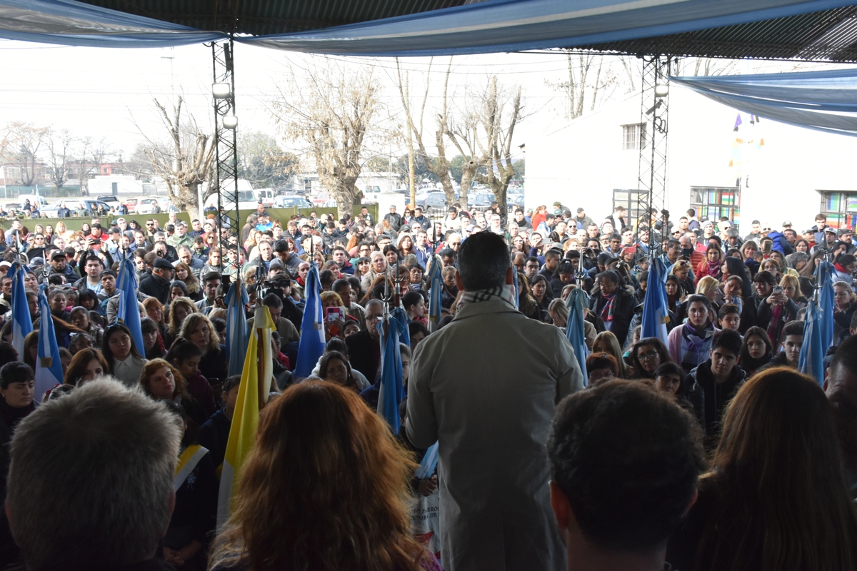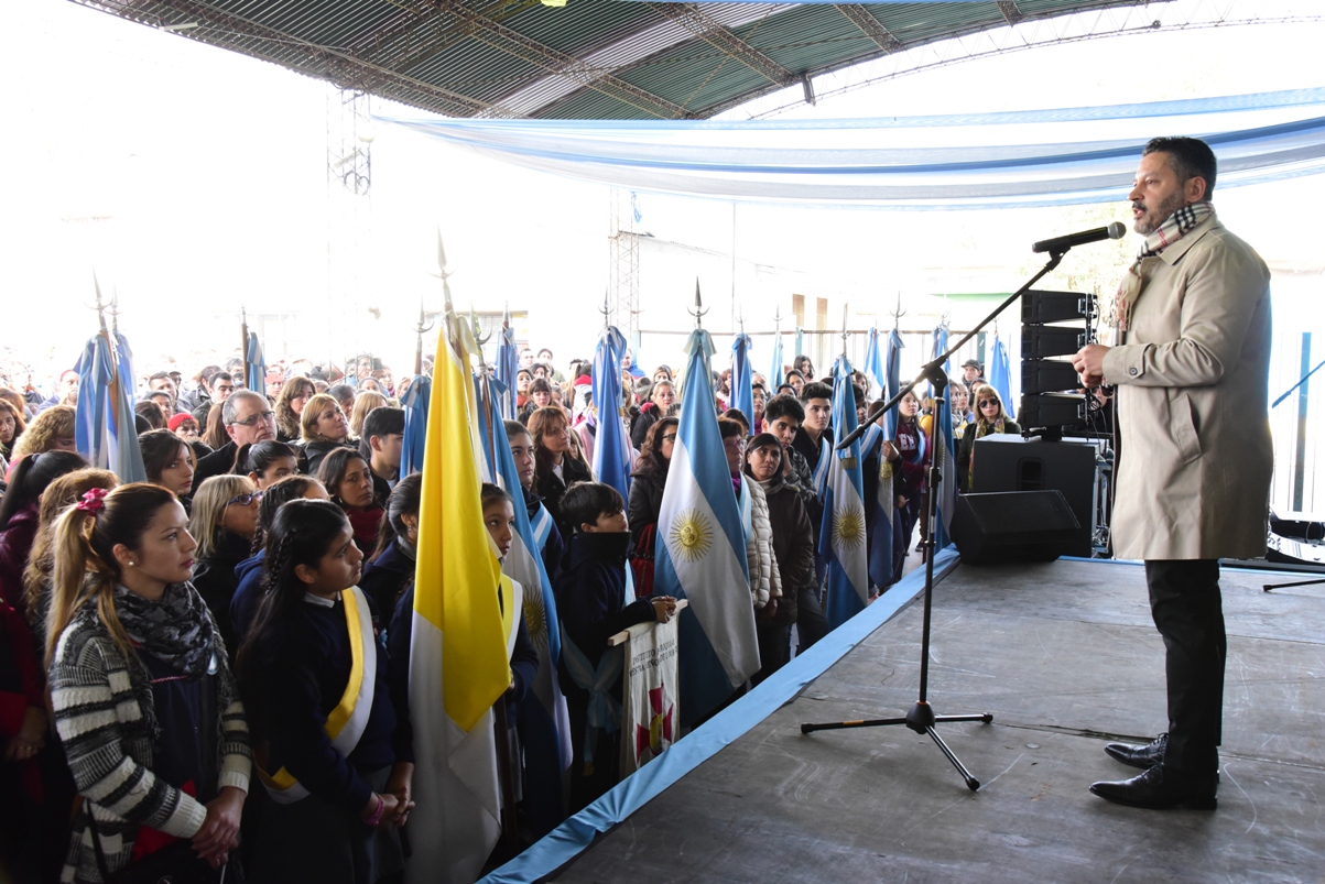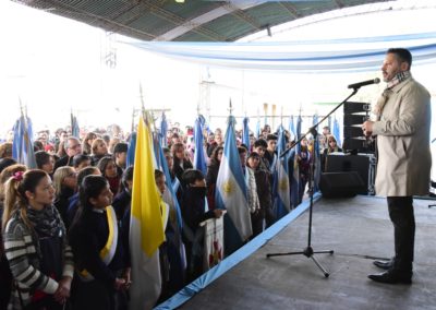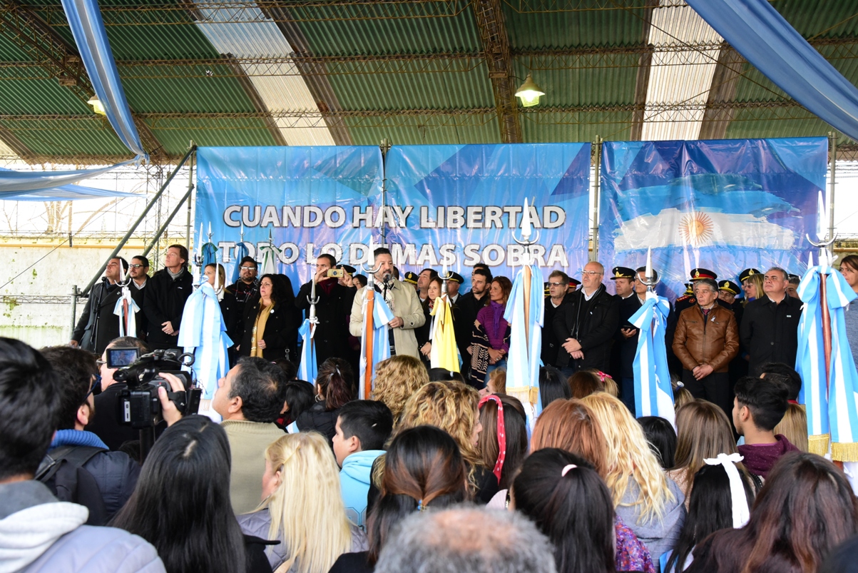 Con la presencia del jefe comunal Gustavo Menéndez, autoridades municipales, la comunidad educativa y vecinos, el acto oficial contó el desfile de abanderados y escoltas. Además los padres y alumnos presentes recibieron el mensaje del mandatario local y las autoridades escolares.