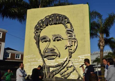 Durante el acto, el Mandatario Municipal recibió en el distrito a intendentes para presentar la obra artística dedicada a Rucci, a quien definió como “un símbolo del universo sindical del siglo XX argentino“.