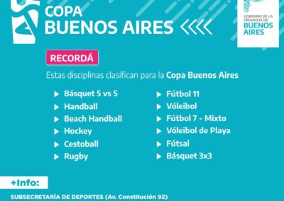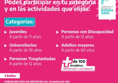 • Deportes para Personas con Discapacidad: contactarse con la Subsecretaría de Deportes.