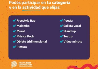 • Disciplinas Culturales y Disciplinas Culturales para Personas con Discapacidad: contactarse con la Secretaría de Cultura.