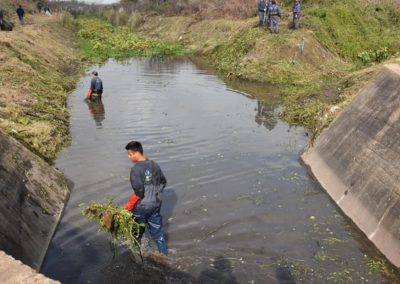 La limpieza del Arroyo Torres, planificada en dos tramos desde Av. Bicentenario, es realizada por el área de gobierno a cargo de Guillermo Busto, en conjunto con la Cooperativa de Trabajo Mi Cielo, que colabora en el municipio con la limpieza de los cursos de agua.