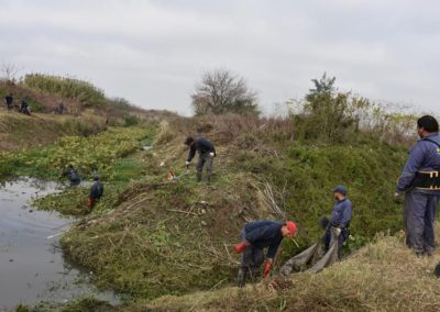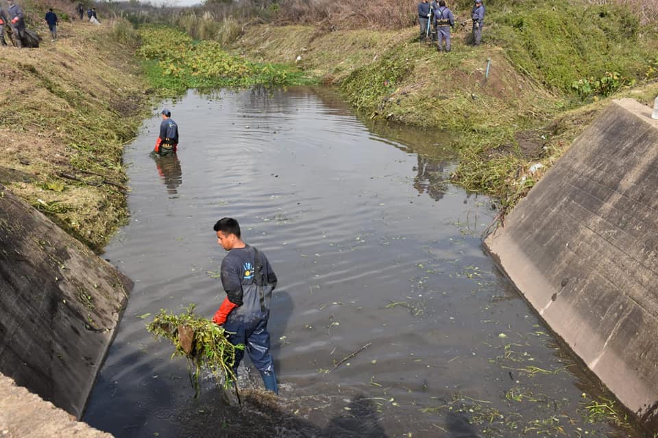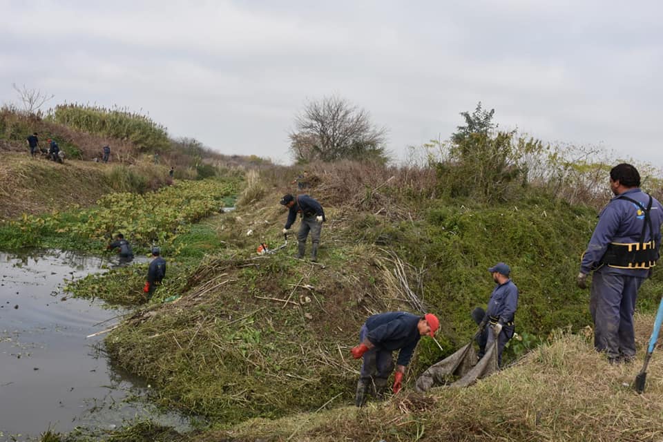 Las tareas que se realizan en el lugar son desmalezamiento, retiro de ramas y recolección de basura, con el objetivo de prevenir obstrucciones. Para efectuar el trabajo de saneamiento de manera correcta, los empleados deben ingresar al arroyo.