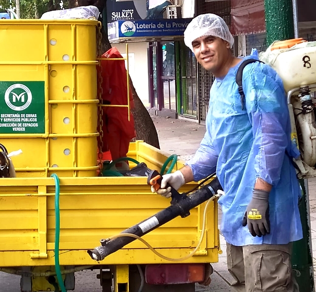 La Secretaría de Obras y Servicios Públicos continúa con las tareas de limpieza y desinfección en Merlo.