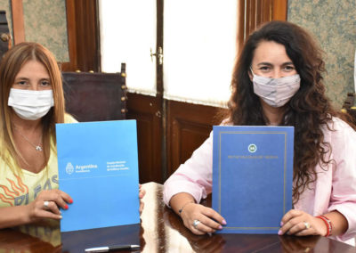 La Intendenta Karina Menéndez, recibió a la Presidenta del Consejo Nacional de Coordinación de Políticas Sociales, Marisol Merquel, para la firma de un convenio de adhesión del distrito al Plan “AccionAR”, para avanzar en la implementación del Programa “Ayudas Urgentes”, que busca subsanar las necesidades básicas de las familias más vulnerables.