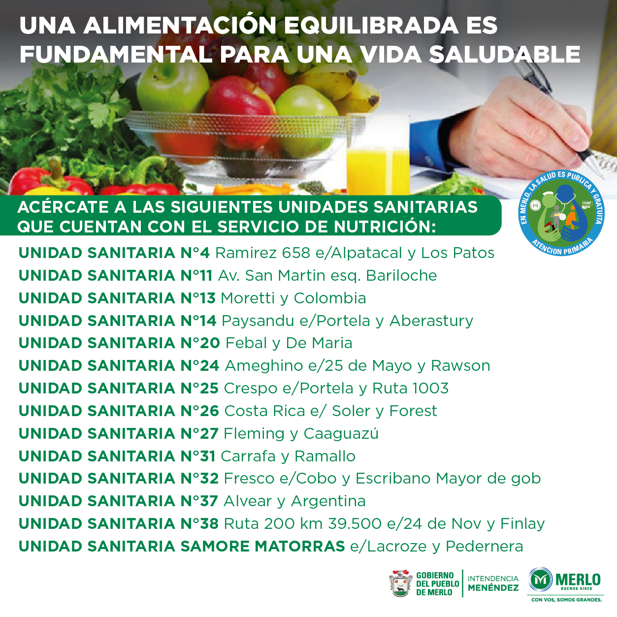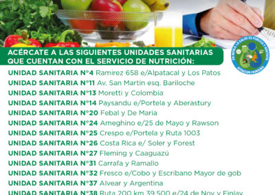 Acercate a las unidades sanitarias que cuentan con el Servicio de Nutrición para recibir información y asesoramiento: