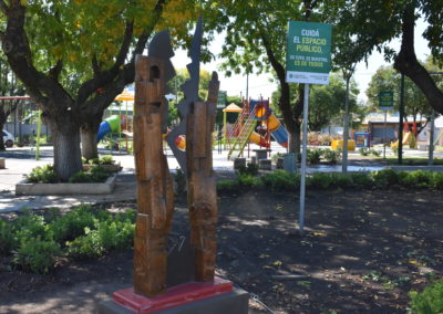 Además, se colocara en este espacio una escultura de la Artista Merlense, Julia Farjat realizada en hierro y madera titulada “ HÉROES”.