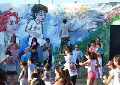 Durante la jornada del 25 de noviembre, se pintó un mural con la frase “Los niños, los valores y el deporte están por encima de cualquier diferencia”, que – según manifestó la Subsecretaria de Entidades Intermedias Cecilia Argüello -, le da un contexto a este momento de la institución.