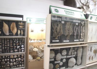 El museo cuenta con paneles colmados mariposas, crustáceos y otros artrópodos disecados, presentados en forma natural, informativa y de gran atracción visual. Asimismo hay restos fósiles, esqueletos, cráneos y diversas partes óseas de distintos vertebrados, moluscos, vegetales, rocas, minerales y piedras semi-preciosas.