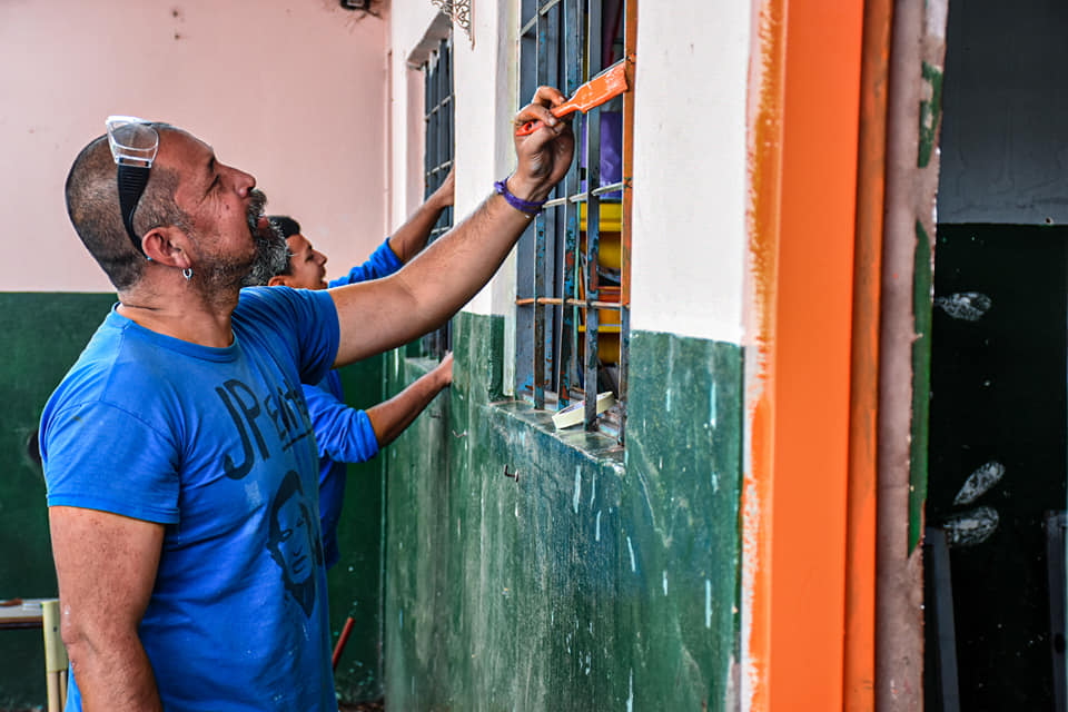 En el marco del Programa Argentina Unida por la Educación y el Trabajo, los beneficiarios del Potenciar Trabajo en articulación con la Secretaría de Desarrollo e Integración Social, estan refaccionando y mejorando las escuelas públicas del Distrito.