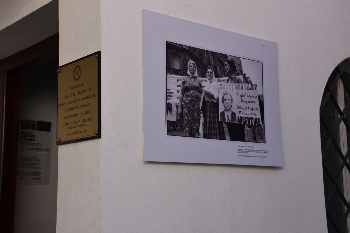 En el marco del Día Nacional de la Identidad, que se celebra el 22 de octubre, la Dirección de Derechos del Consumidor de Merlo presentó en su sede la muestra de imágenes documentales que reflejan los momentos más importantes de la lucha por la Memoria, la Verdad y la Justicia en defensa de la democracia.