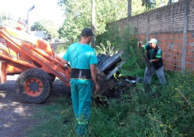 –Tareas de limpieza y recolección de ramas, residuos, pozos crónicos y canastos comunitarios en: