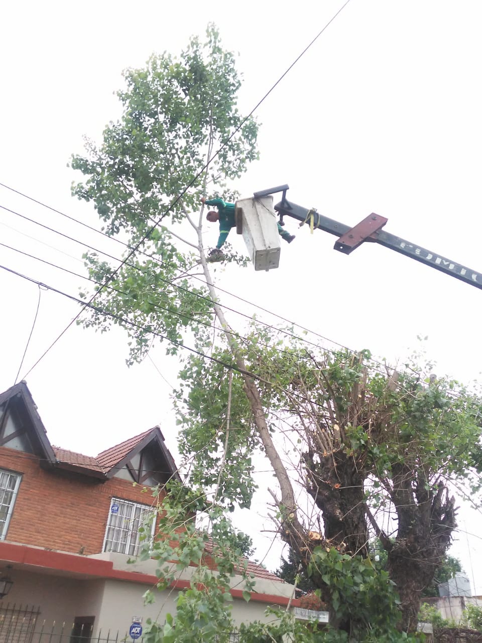 Los trabajos que llevaron adelante fueron reducción de altura, extracción de dos ejemplares, despeje de luminaria y raleo en varias zonas del municipio.