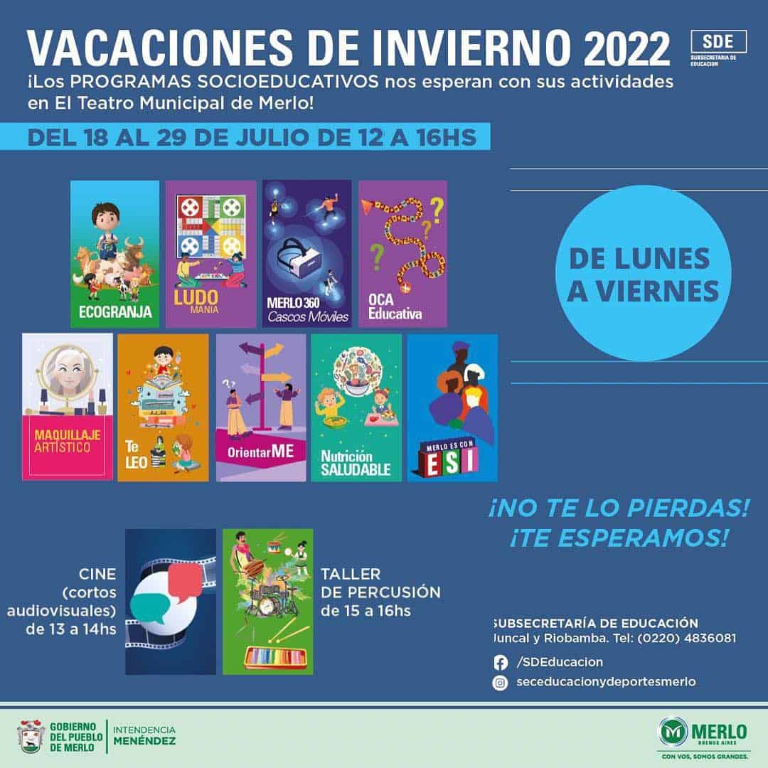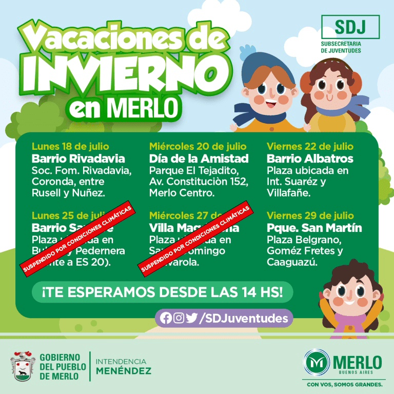 La Municipalidad de Merlo ofrece propuestas gratuitas en sus espacios culturales para que disfrutes en familia estas vacaciones de invierno.