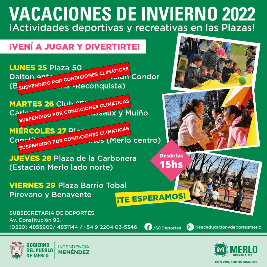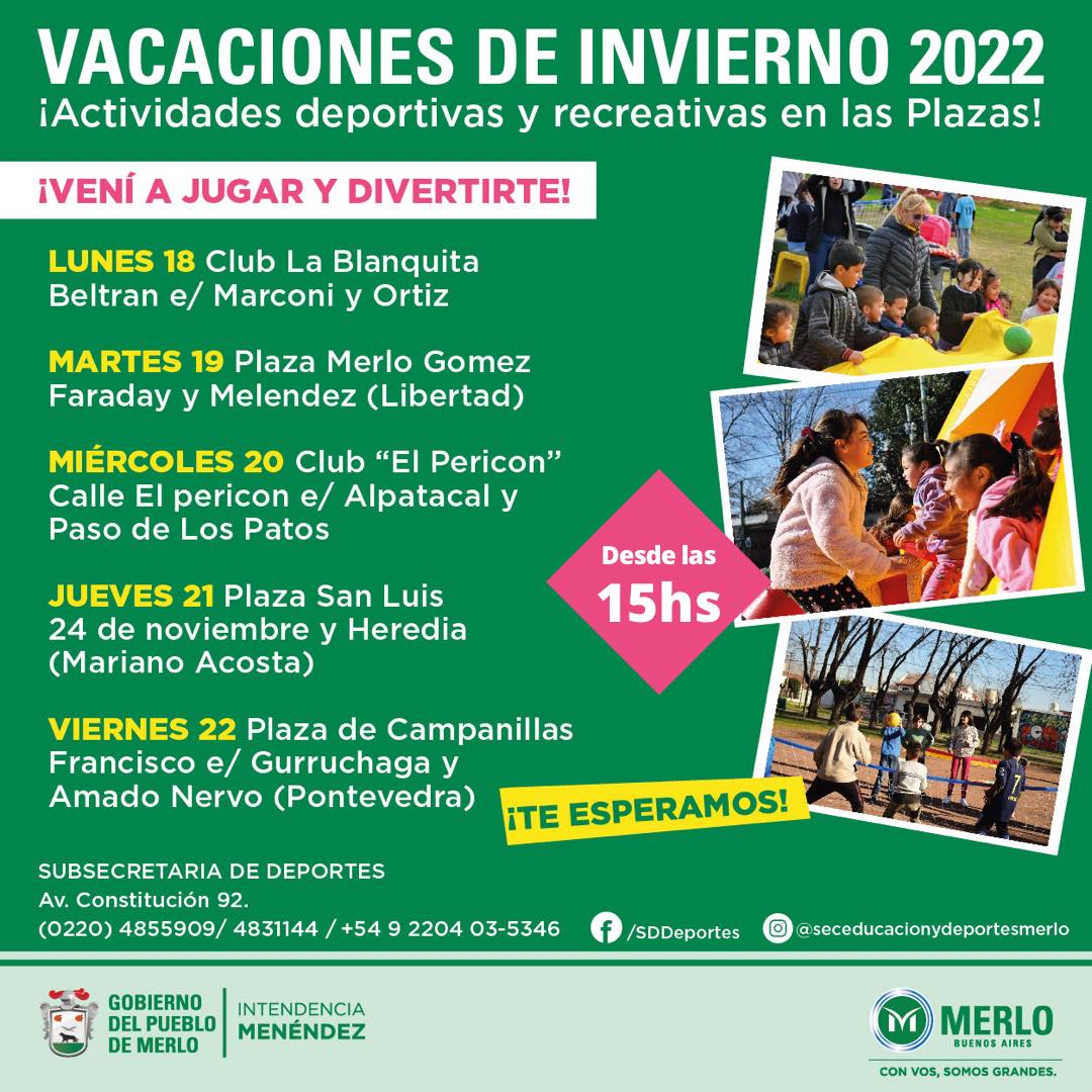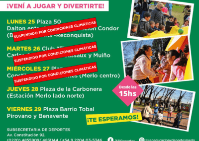 También hay actividades deportivas y recreativas en las plazas y barrios de Merlo para pasar unas vacaciones divertidas.