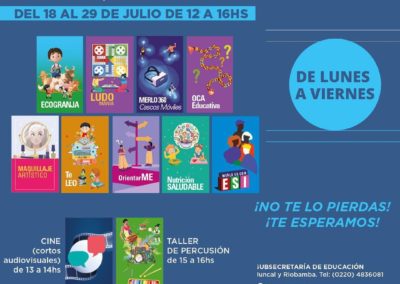 - Lunes 28/07, 15 hs – Club Juventud Unida de Ferrari – Vidt e/ Discépolo y Elías Alippi