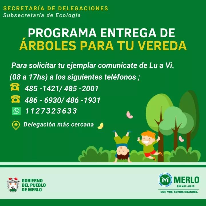 Para solicitar un ejemplar comunícate de lunes a viernes de 8 a 17 hs a los teléfonos: 485 -1421/ 485-2001/ 486 – 6930/ 486 – 1931, por whatsapp al 1127323633 o acercarte a la delegación municipal más cercana a tu domicilio. Se entregan en base a las especies que el vivero tenga disponibles.