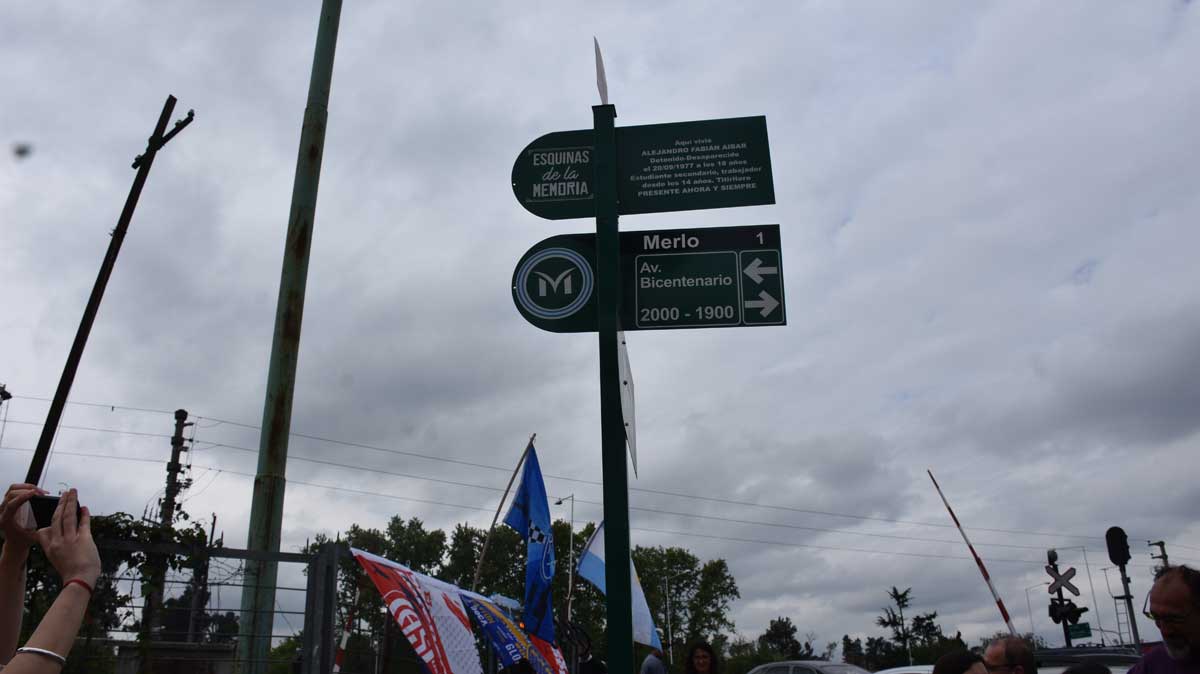Se llevó adelante en el Barrio Pompeya una nueva señalización de las Esquinas de la Memoria, en Avenida Bicentenario y Filiberto. En esta oportunidad con motivo de homenaje a Alejandro Fabián Aibar, joven estudiante detenido-desaparecido en Merlo durante la última dictadura cívico-militar.