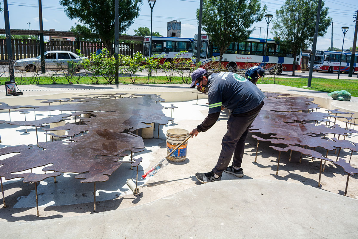 Los trabajadores de Obras Públicas llevan adelante la renovación de la pintura del lugar, así como también el corte de césped, limpieza y mantenimiento para conservar en óptimas condiciones el material vegetal del predio.