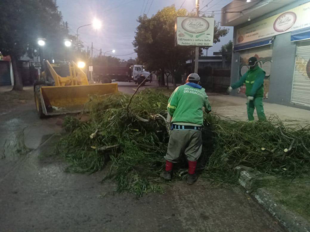 Las secretarías de Delegaciones y de Obras y Servicios Públicos realizaron tareas de corte y acopio de césped, recolección de ramas y residuos, además, la remoción de árboles caídos, limpieza de zanjas y erradicación de pozos crónicos.