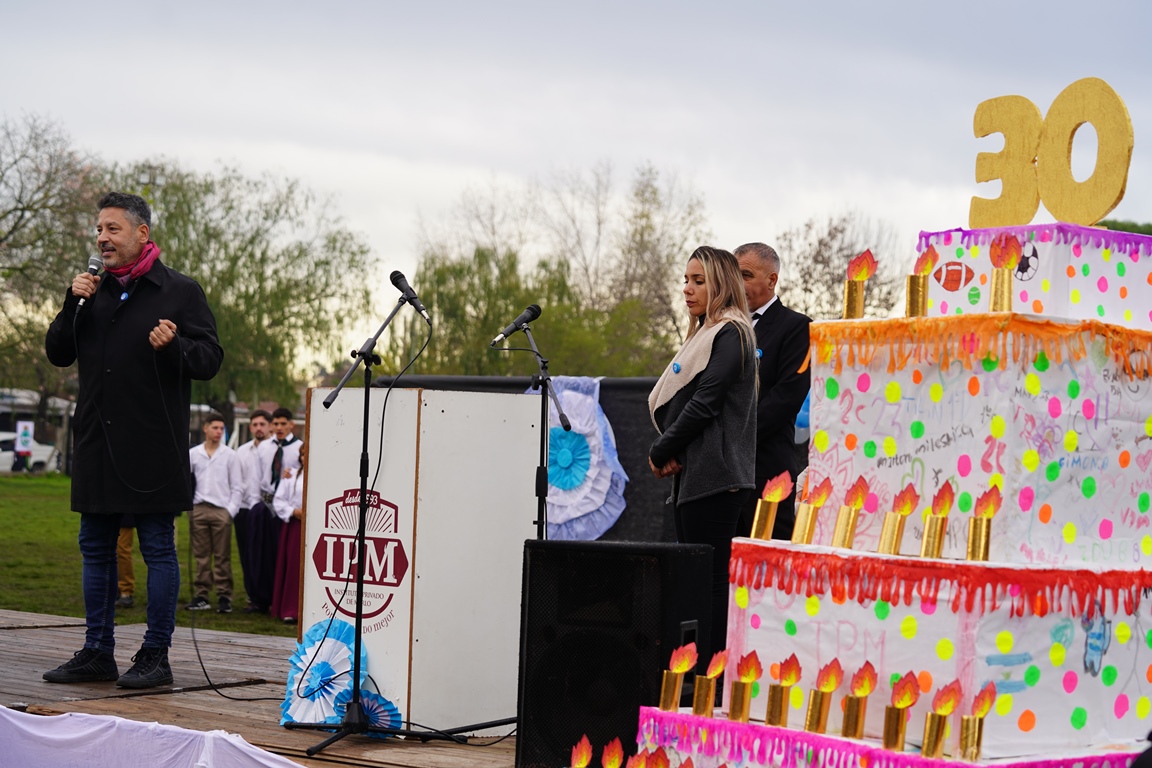 Más de 2 mil estudiantes y sus familias festejaron el aniversario de la institución ubicada en Loma Florida. Gustavo Menéndez compartió la jornada junto a la comunidad educativa.