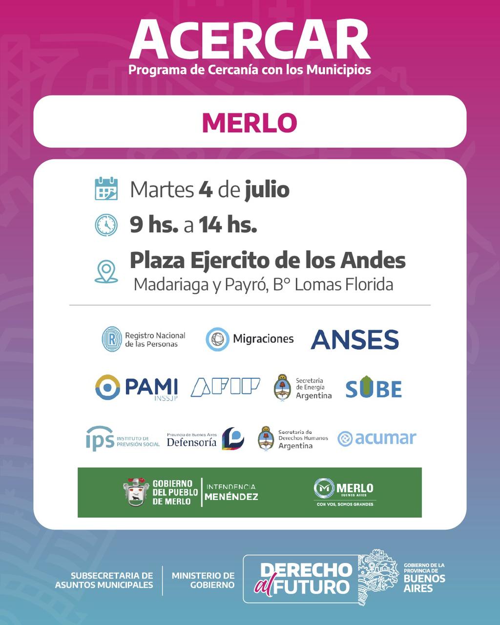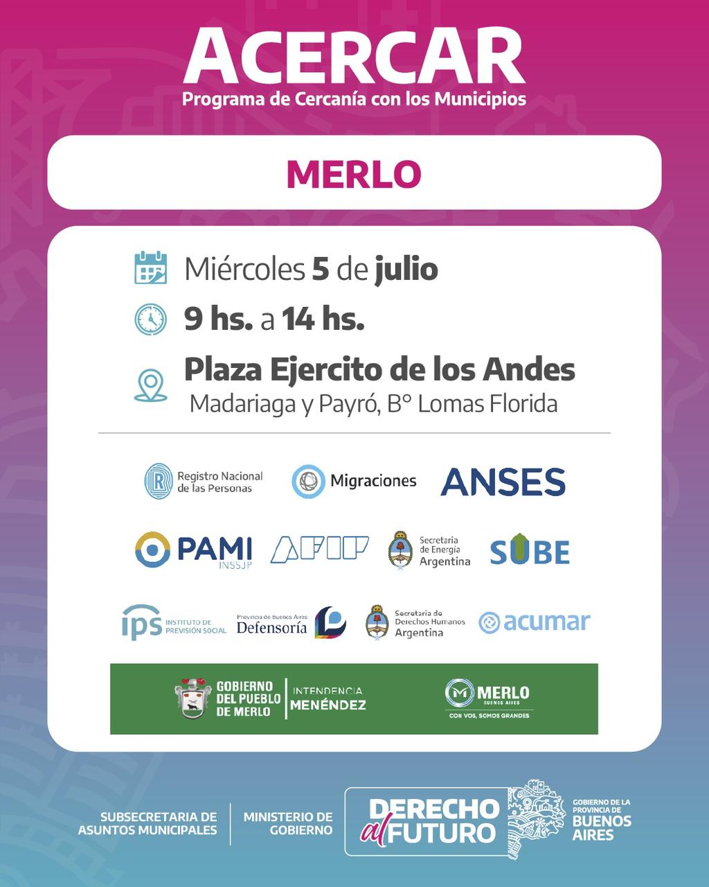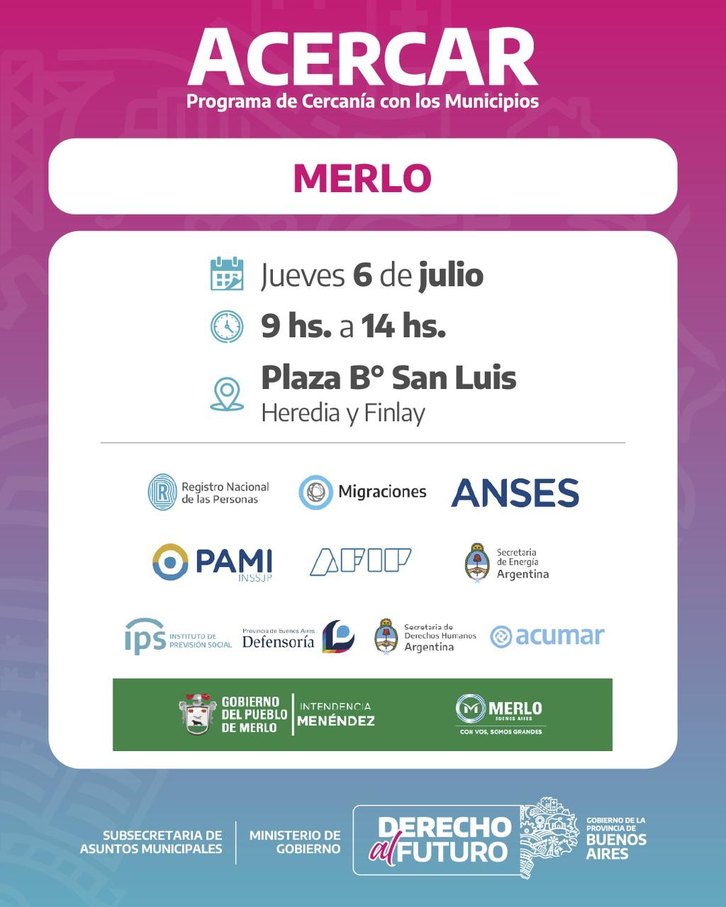 El programa ACERCAR tiene lugar en el territorio merlense gracias a un trabajo conjunto entre la Intendencia Menéndez con la Subsecretaría de Asuntos Municipales y el Ministerio de Gobierno de la Provincia de Buenos Aires.