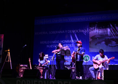 La jornada conmemorativa incluyó una vigilia con música en vivo, la proyección de un documental en el Teatro Municipal de Merlo y el acto central en la Plaza Héroes de Malvinas