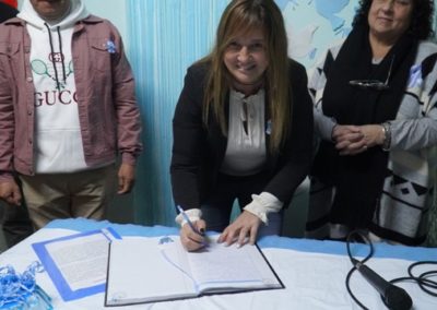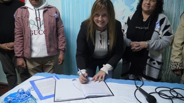 Previo a la llegada a la Escuela Primaria “PROVINCIA DE MENDOZA”, realizó la firma del acta en la Delegación de Mariano Acosta donde la mandataria local estuvo acompañada por concejales, directivos escolares y vecinos de la localidad.