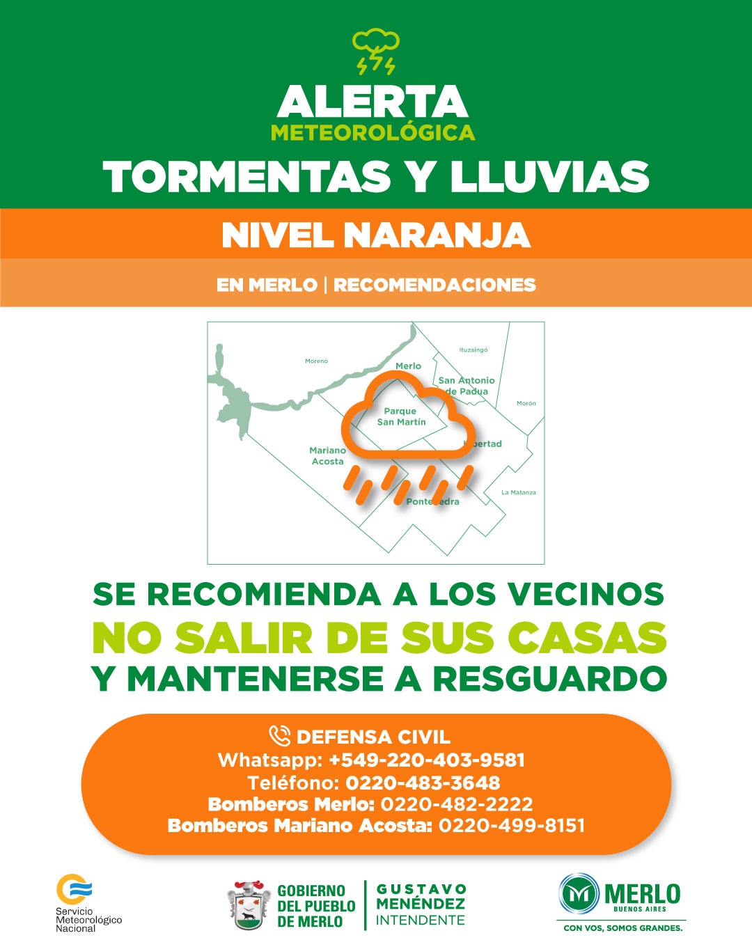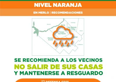 El Servicio Meteorológico Nacional emitió una Alerta Naranja frente a las fuertes lluvias registradas durante la mañana. El Municipio de Merlo y el SMN trabajan de forma conjunta para brindar información precisa a los vecinos.