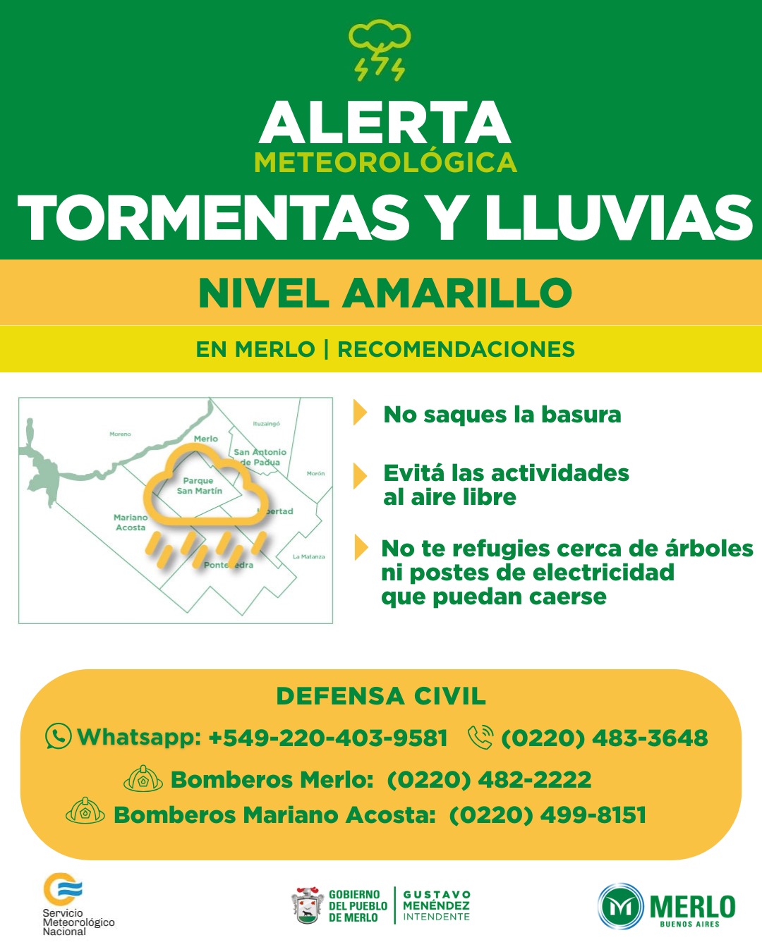 - Si transitás, hacelo atento y con visión panorámica, de lo que pasa a tu alrededor (cables caídos, ramas u objetos proyectados por acción del viento).
