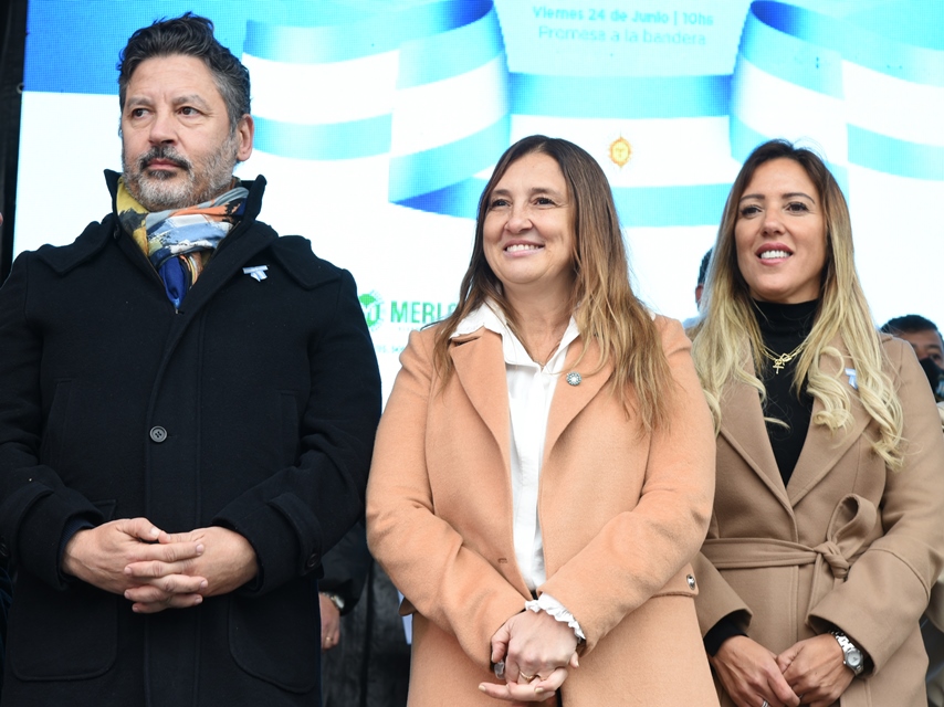 El acto se llevó adelante en la plaza “Manuel Belgrano” de Parque San Martín donde más de mil alumnos de 4to grado de las escuelas de Merlo juraron lealtad al manto sagrado con la presencia de la Intendenta Karina Menéndez.