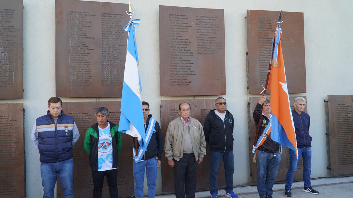 Autoridades locales, ex combatientes y familiares, brindaron homenaje a los 323 marinos que perdieron su vida. En la Plaza Héroes de Malvinas, presentaron ofrendas florales y dedicaron palabras en su honor.