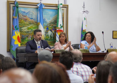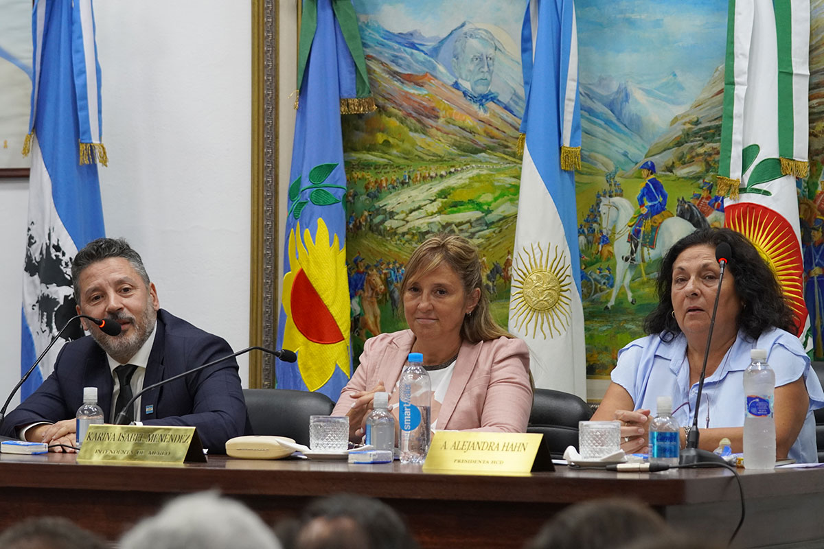 La Intendenta Karina Menéndez dio inicio al periodo de Sesiones Ordinarias del Honorable Concejo Deliberante de Merlo acompañada por Gustavo Menéndez.