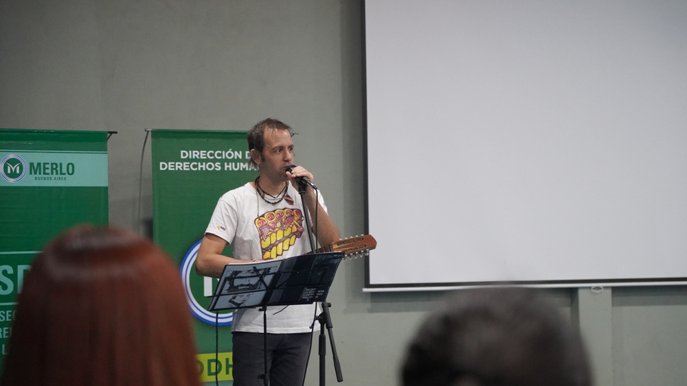 Vecinos y vecinas disfrutaron de una jornada de arte y derechos humanos con música en vivo. El evento, que se realizó en el Polo Audiovisual de Merlo, contó con la muestra fotográfica “Ausencias” de Gustavo Germano y “Literatura realista: censura y dictadura” producida por estudiantes de la Escuela Secundaria N° 58.