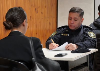 Una vez aprobado el examen continúan con la siguiente etapa, la cual consta de una entrevista de tipo personal y laboral para conocer a cada postulante. Previamente, los 450 aspirantes del distrito tuvieron dos jornadas de capacitación en el Polideportivo “El Ramanso “.
