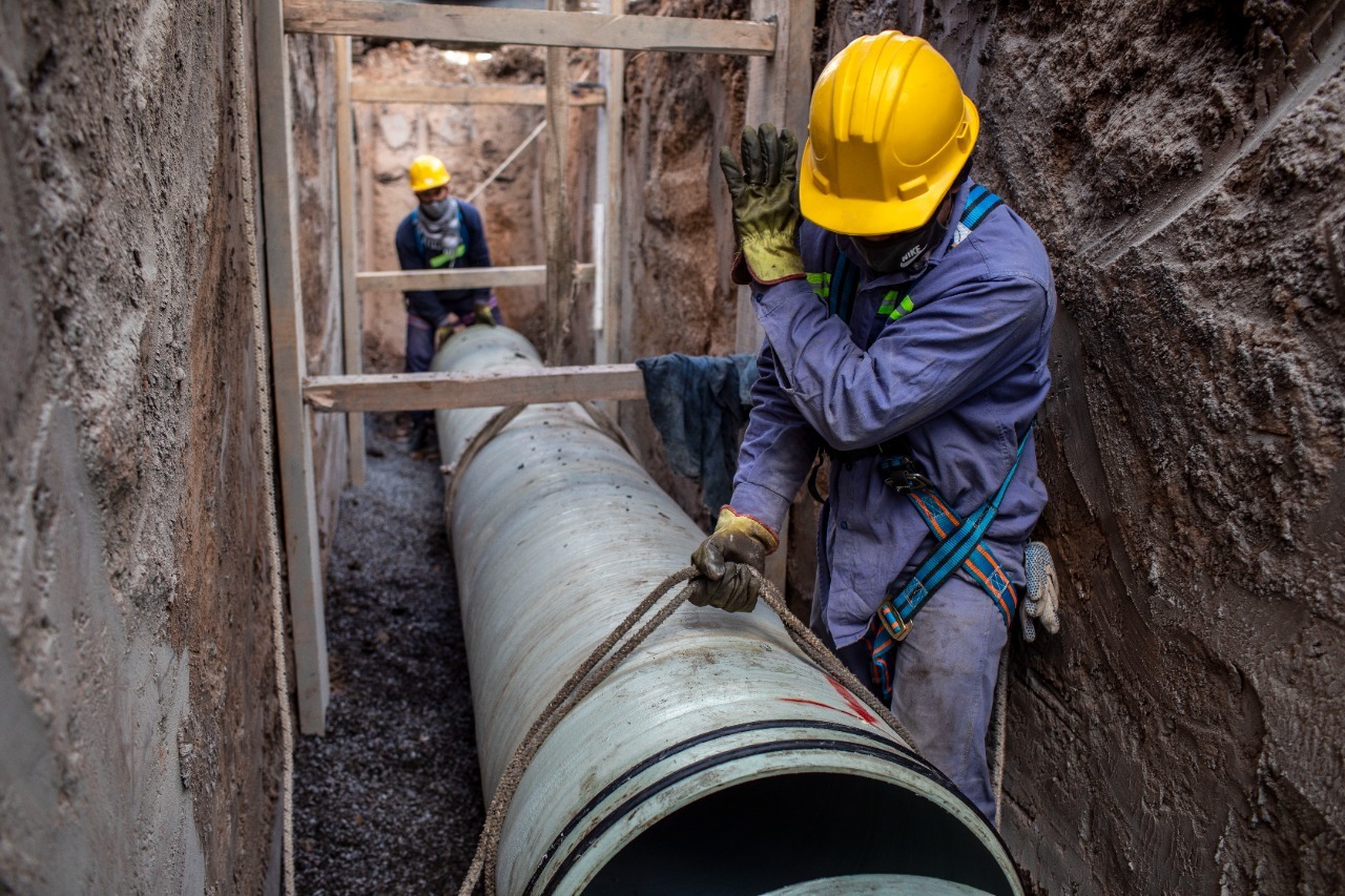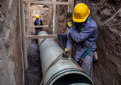 Se trata de la “Red Primaria Refuerzo Merlo”, un conducto de 600mm de diámetro de 3.700 mts de longitud que transportará agua proveniente del Río de la Plata desde el partido de Ituzaingó hasta Merlo, con el objetivo mejorar el servicio sumando un importante caudal de agua potable a la zona para complementar las perforaciones existentes.