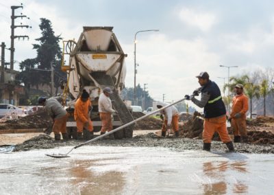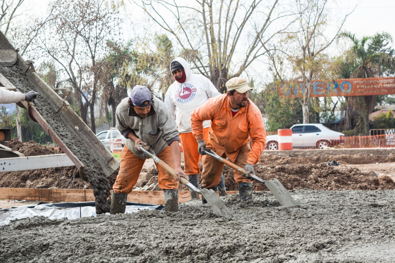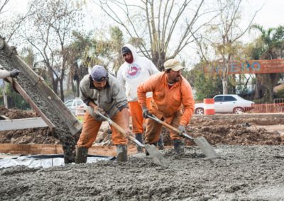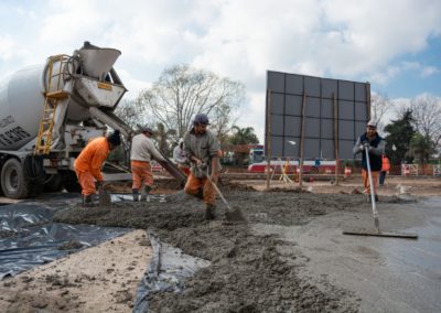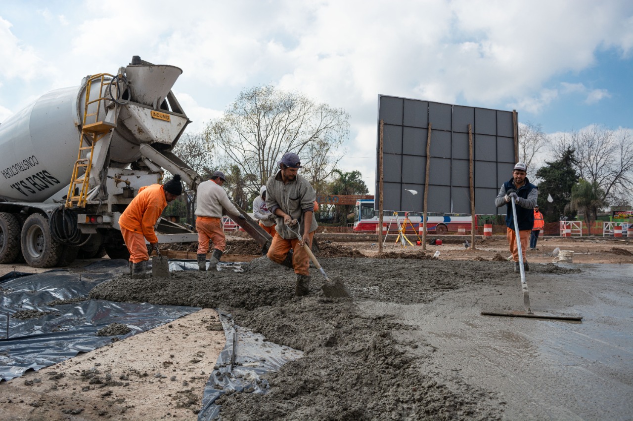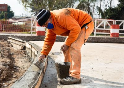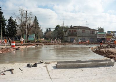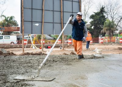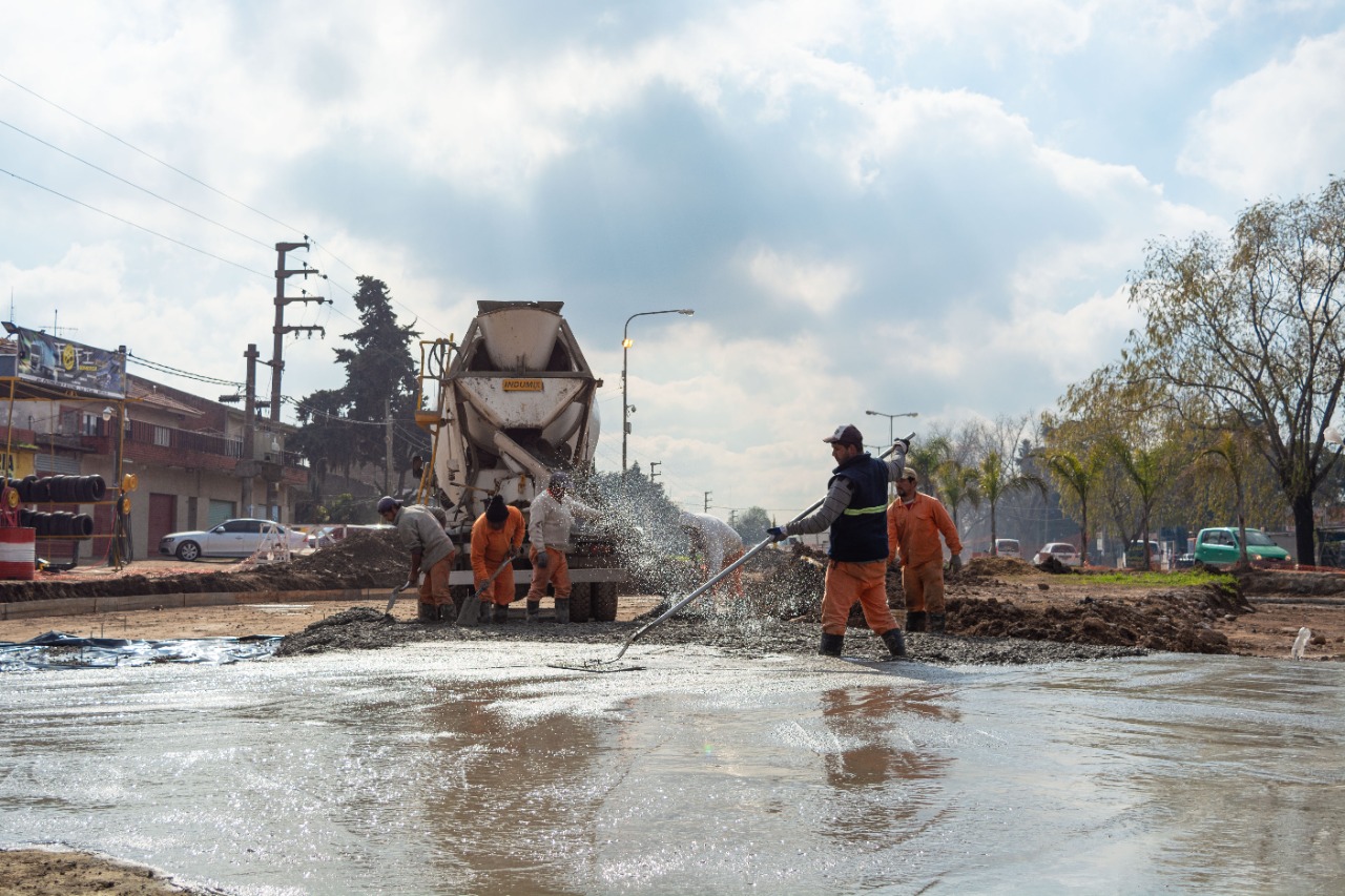 Las tareas que se desarrollan son demolición de pavimento existente, excavación no clasificada, pavimento de hormigón H-30, de espesor 20 cm. y cordón cuneta de hormigón de 20 cm. de espesor y 60 cm. de ancho de cuneta.