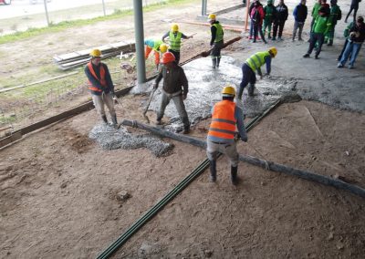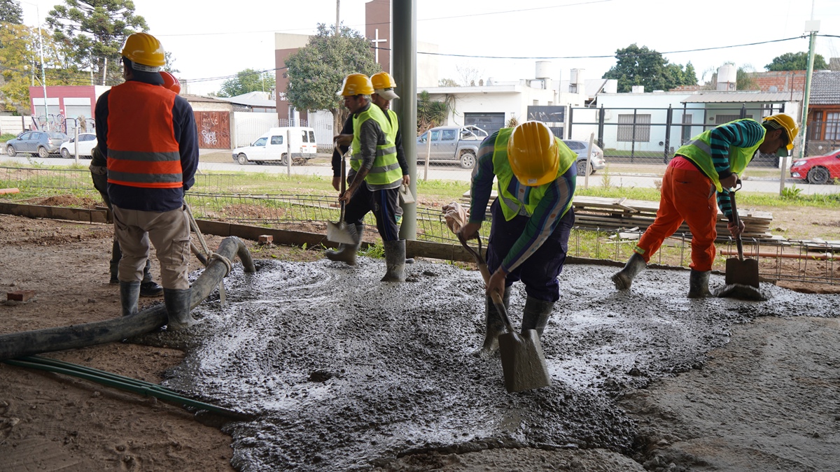 En esta oportunidad, se colocaron más de 120 mts3 de hormigón con la bomba inyectora, lo que permite avanzar con la finalización del contrapiso, que abarca 2400 metros de superficie.