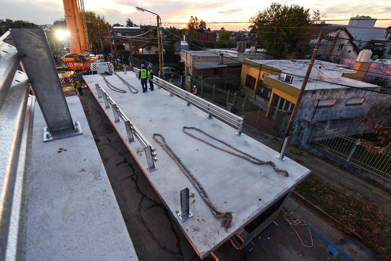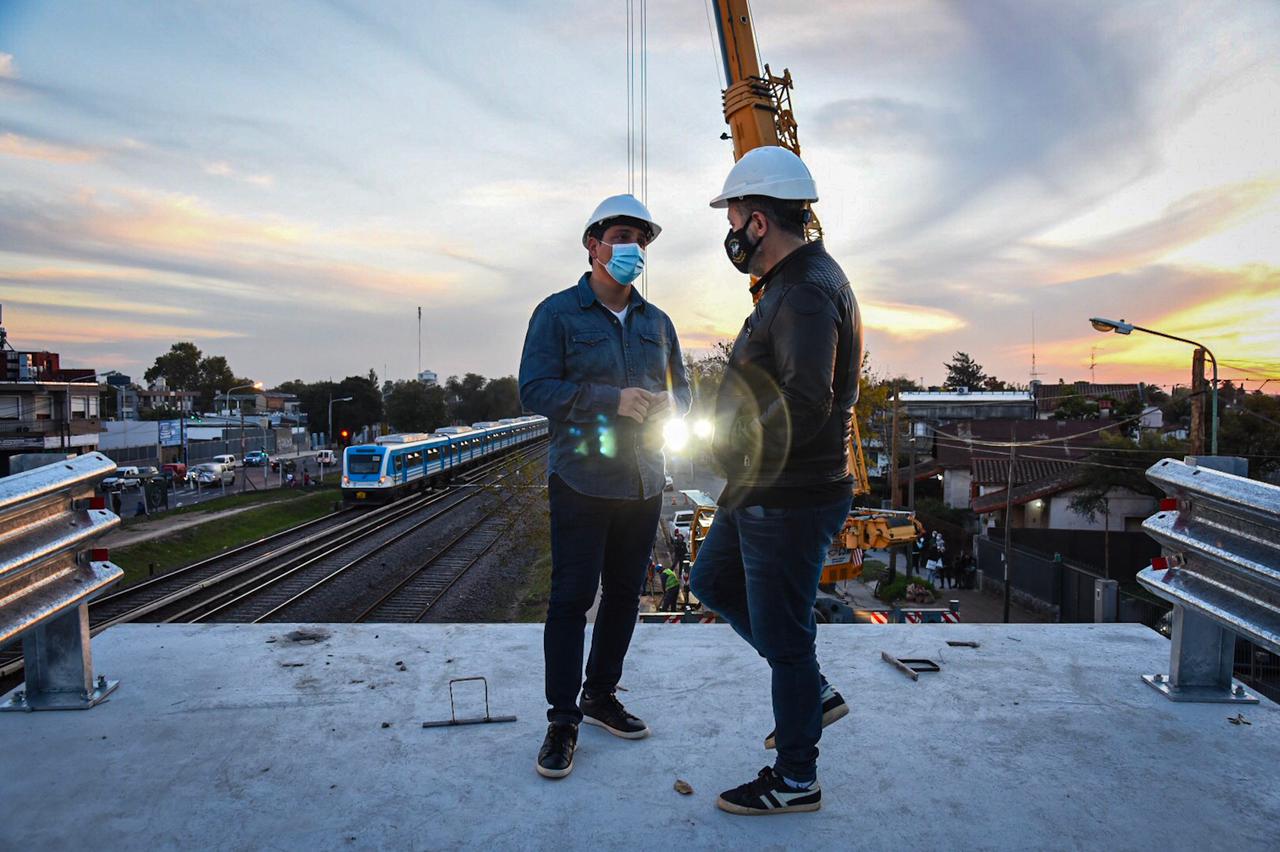 El puente que unirá el lado norte con el sur de San Antonio de Padua, permitirá una mejor circulación vehicular y peatonal. El Intendente Gustavo Menéndez y el Presidente de Trenes Argentinos Martin Marinucci supervisaron la colocación de la primera parte del viaducto.
