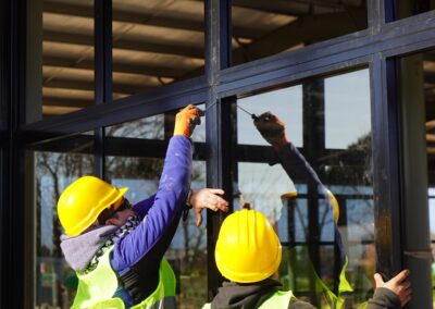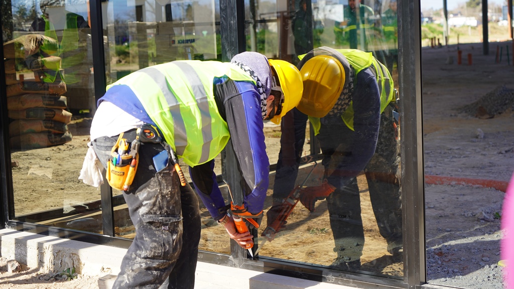 En esta oportunidad, se colocó el hormigón para el contrapiso, que abarca 2400 metros de superficie. Además, se colocaron los primeros vidrios blindex, que estarán en el frente del Hospital, ubicado en Virgen de Copacabana y Artigas.