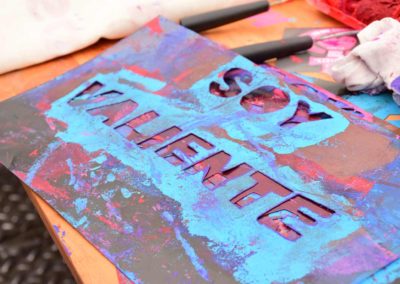 La idea central de esta actividad es que el vecino de Merlo pinte la bandera con mensajes alusivos mediante la utilización de stencils y pinturas, para que se sienta representado y comprometido, y que deje su nombre y firma en la bandera para, de esta forma, lograr dar visibilidad e identidad al compromiso de la lucha contra este mal social. Una vez finalizada, la bandera será colgada en el Municipio a vista de todos los vecinos que pasen por la zona.