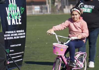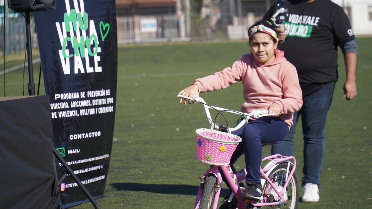 Familias merlenses participaron de una bicicleteada solidaria para concientizar sobre el Bullying, en un evento organizado por la Subsecretaría de Deportes y la ONG Tu Vida Vale Mucho, en el Parque Municipal Néstor Kirchner.